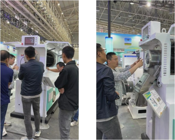 華豫萬通此次展出了HRP40智能柔性大米搓光機(jī)、YHT700智能大豆脫皮破瓣機(jī)、HTY智能葵花籽脫殼機(jī)、冰冷式纖維微粉機(jī)等創(chuàng)新產(chǎn)品亮相展會(huì),并圍繞糧機(jī)創(chuàng)新技術(shù)和數(shù)智化工程等新質(zhì)生產(chǎn)力與看展客商探討交流,以技術(shù)實(shí)力促進(jìn)糧食加工企業(yè)轉(zhuǎn)型升級。