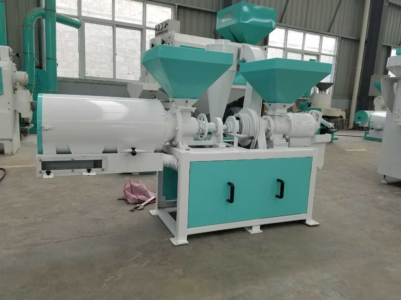 玉米脫皮拋光、制糝、制粉、風選于一體的玉米加工小型組合設備;