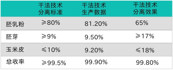 1.高效的分離效果:隨著設(shè)備創(chuàng)新和光電自控水平的提高,通過先進的工藝過程,成功高效分離出脫脂玉米粉、胚芽、玉米皮,分離效果好于濕法;
