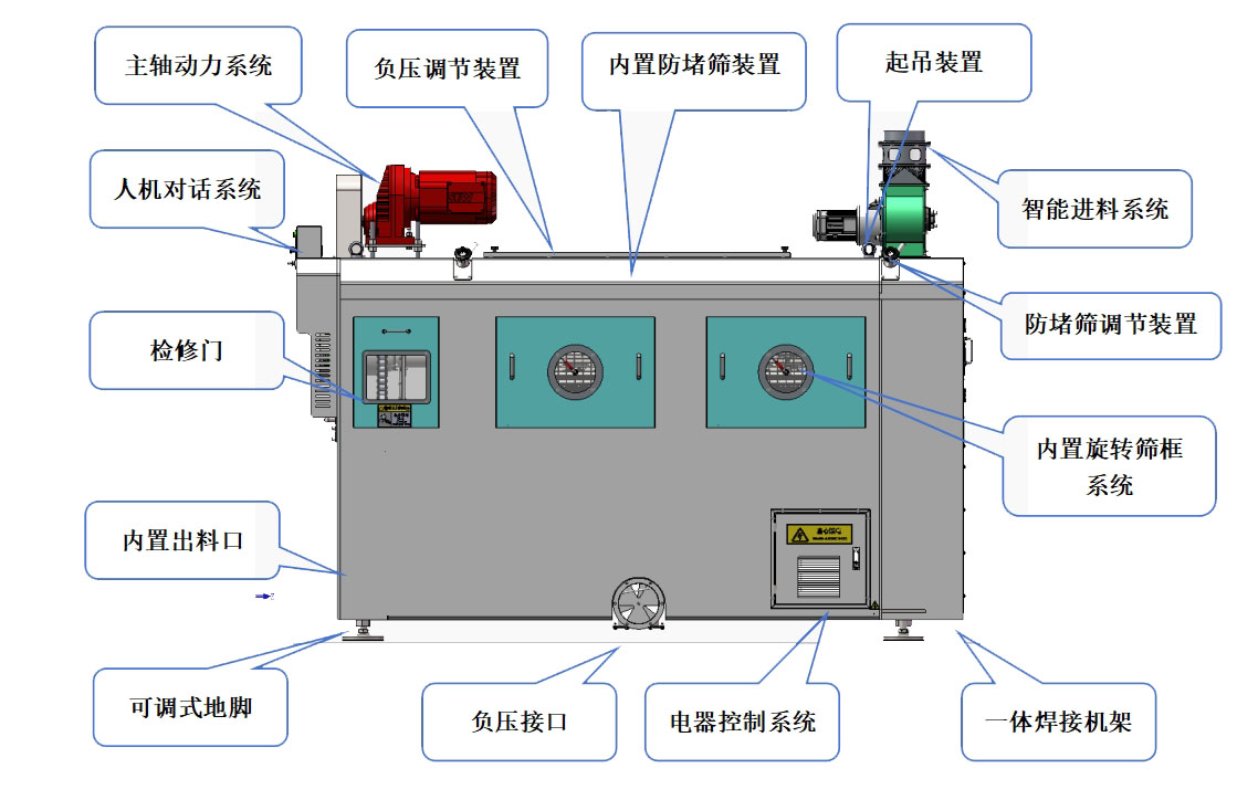 | 名稱 | 型號 | 動力kw | 時產(chǎn)量t/h | 外接負壓 | 外形尺寸 | |||||